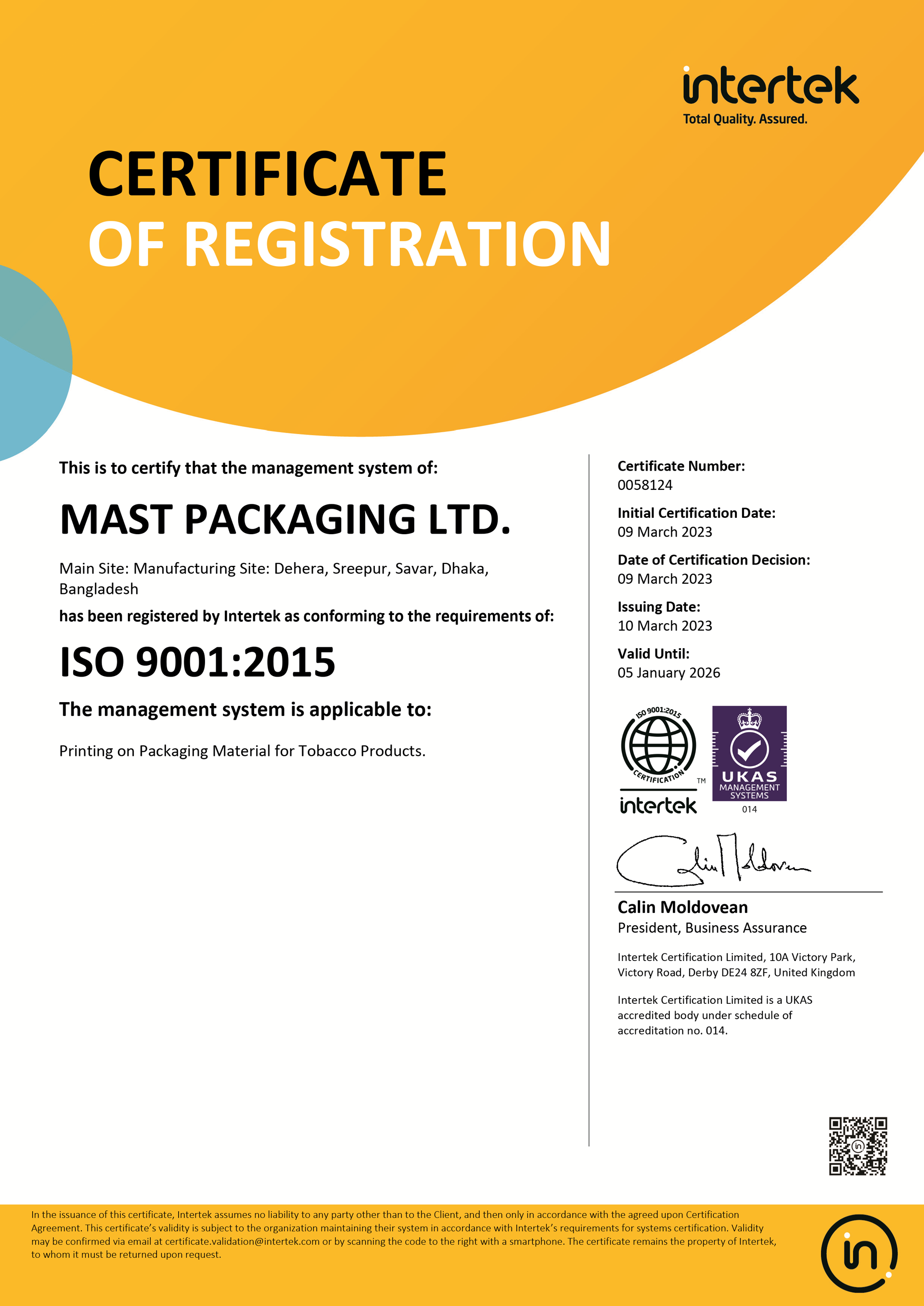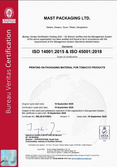 Mast Packaging Limited is the longest serving supplier of tobacco packaging material to BAT (British American Tobacco), Bangladesh. We have been supplying printed blanks, outers, and inner frame bobbins.